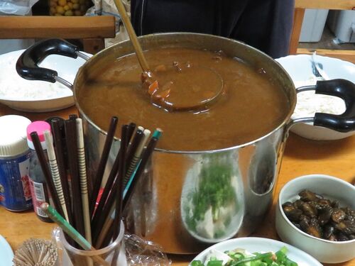 50皿分作った。 大量の料理を作ってると、なんか楽しい気分になる。これで食べても食べてもなくならないぞ。 この量でも3日と持たなかった。10人いると食料の減りがすごい。 『無限カレー』っぽくしようと思ったけど、腐りそうでやめた。やるならせめて…